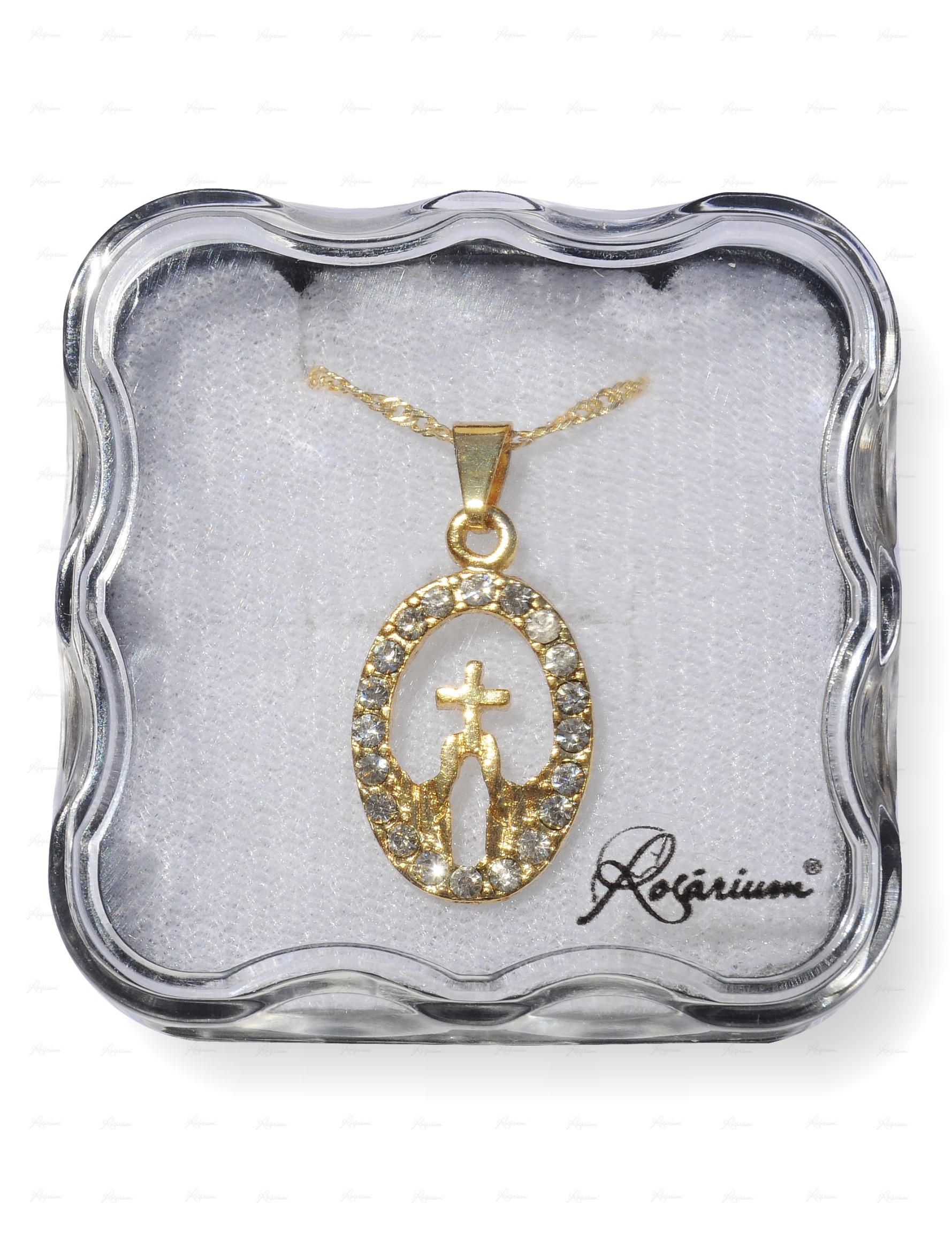 Medalha com cruz, com brilhantes strass - 2,2 cm