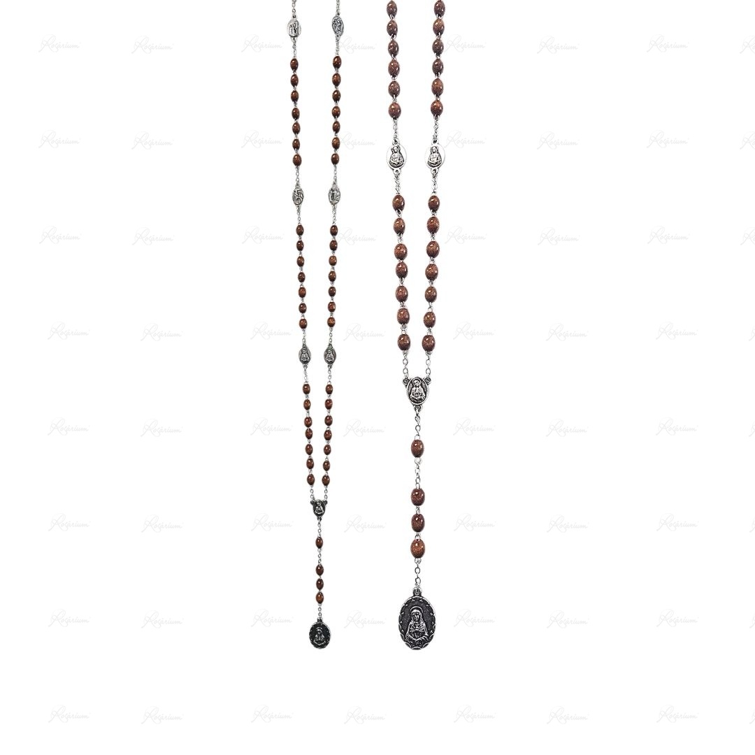 Terço de Mdeira Oval 7/8 c/ Medalha de Nossa senhora das Dores