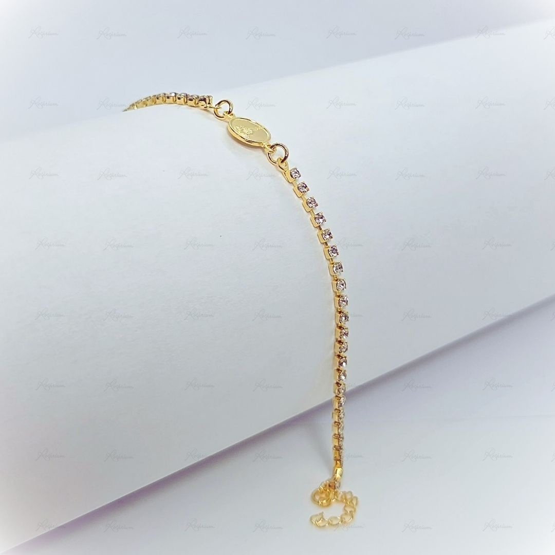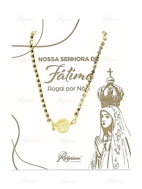 Pulseira Banhada a Ouro 18K c/Brilhantes e Medalha Nossa Senhora de Fátima