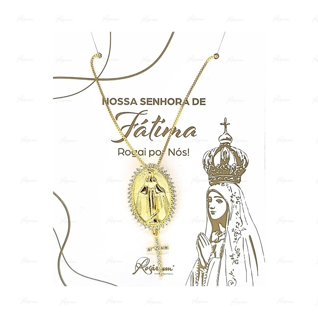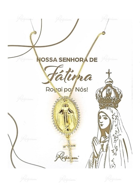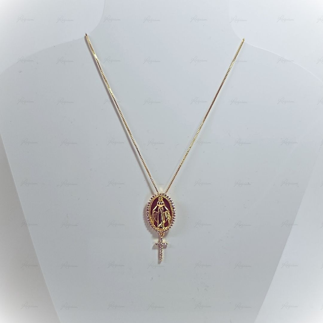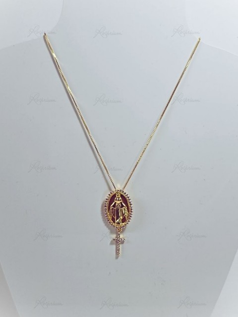 Fio Banhado a Ouro 8K c/Medalha e Cruz c/Brilhantes - Nossa Senhora das Graças
