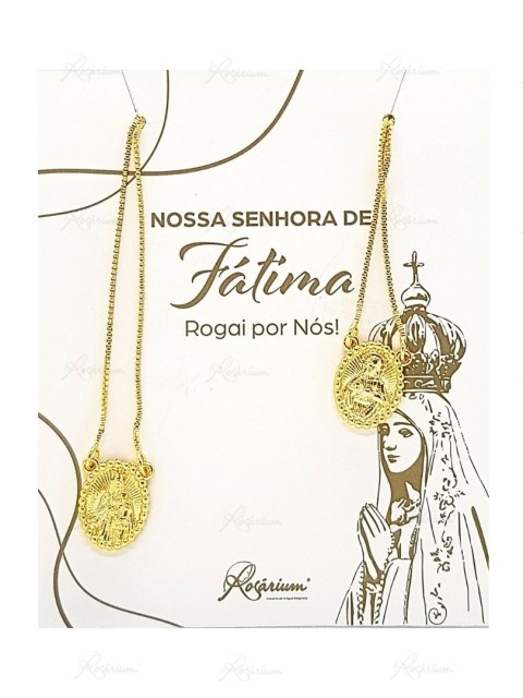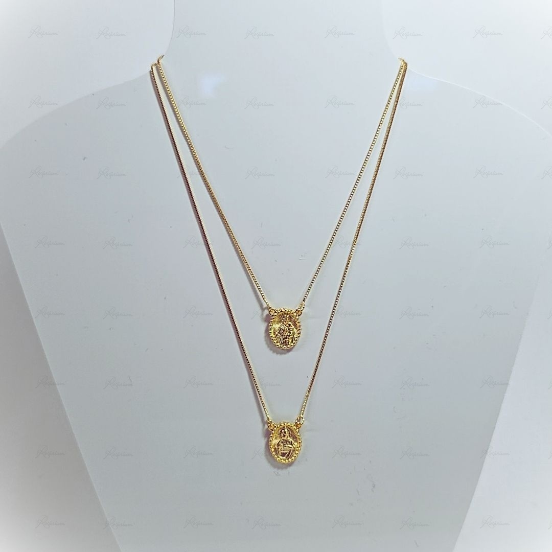 Fio Escapulário Banhado a Ouro 18K - Nossa Senhora do Carmo e Sagrado Coração De Jesus