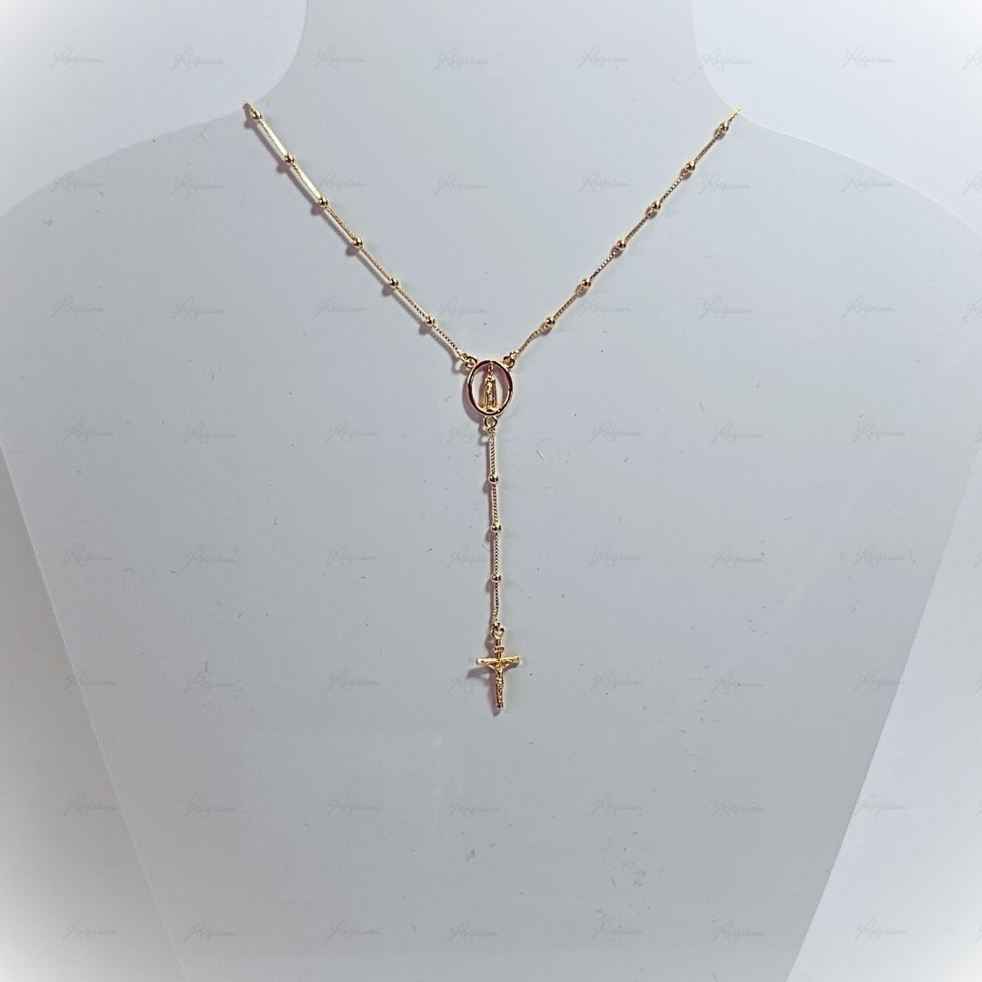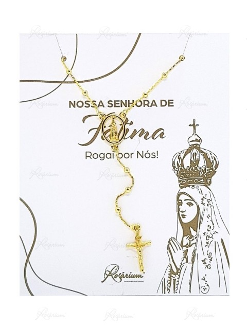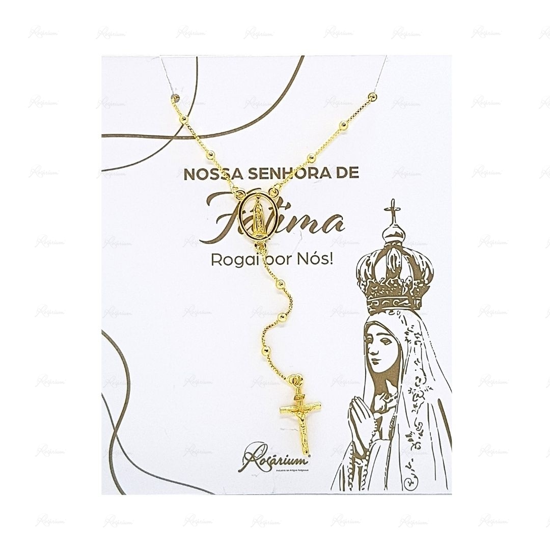 Terço Banhado A Ouro 18K c/Contas 2MM - Nossa Senhora de Fátima