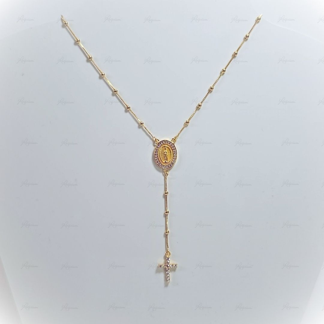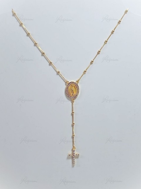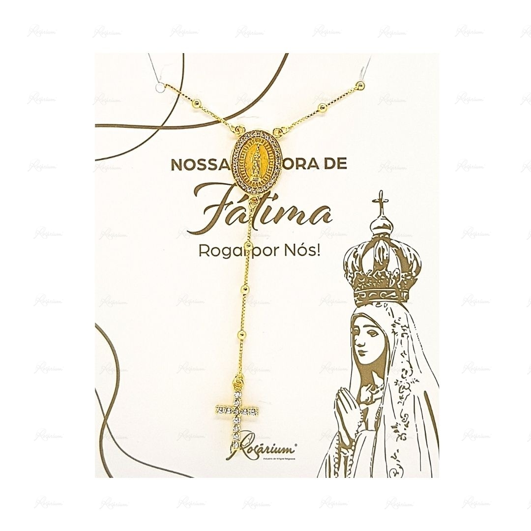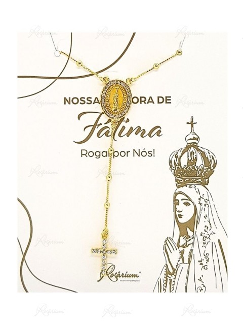 Terço Banhado a Ouro 18K c/contas 2MM, Passador e Cruz c/Brilhantes - Fátima