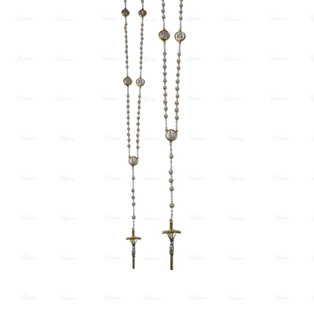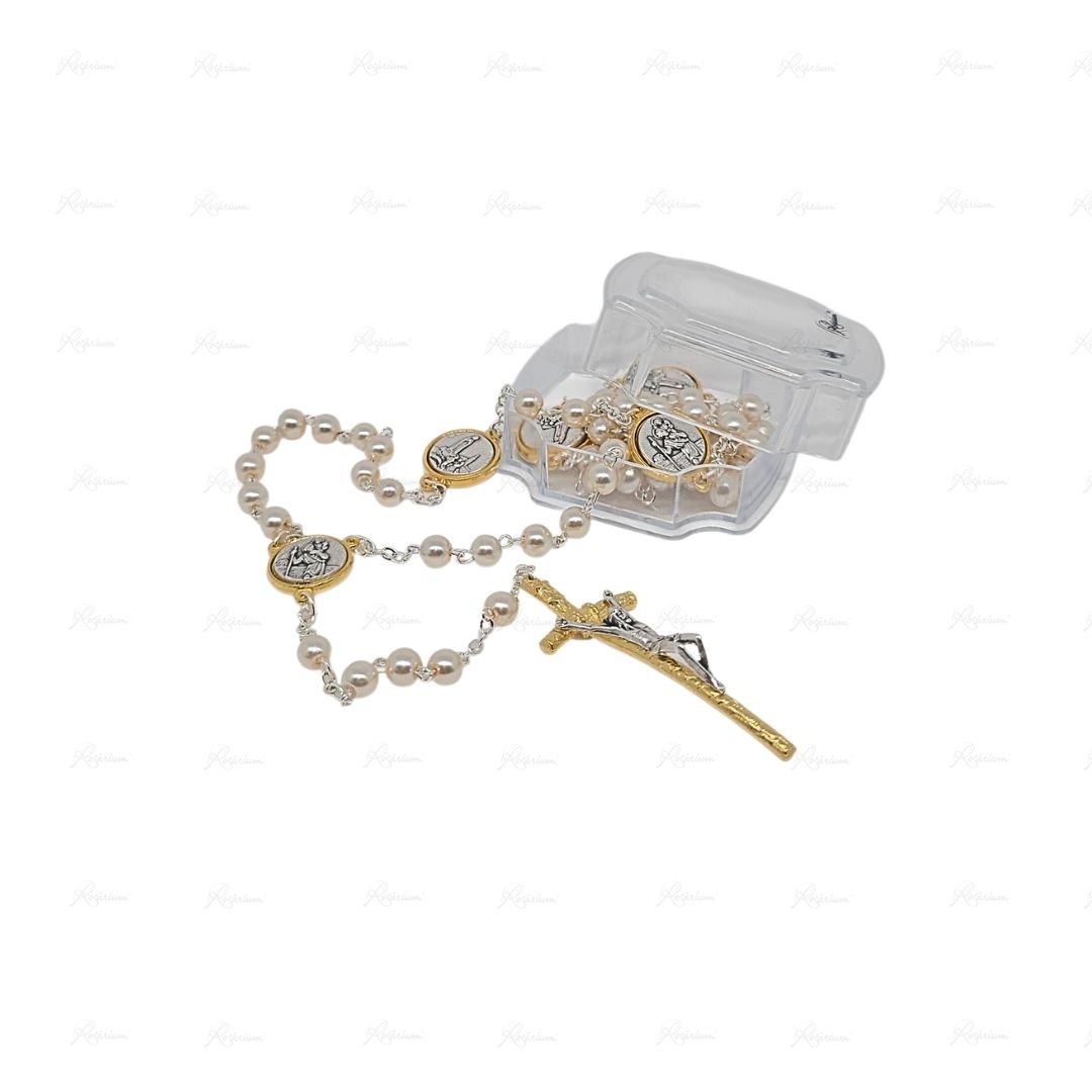 Terço de Pérola 6MM c/Medalhas Fátima/São Cristovão