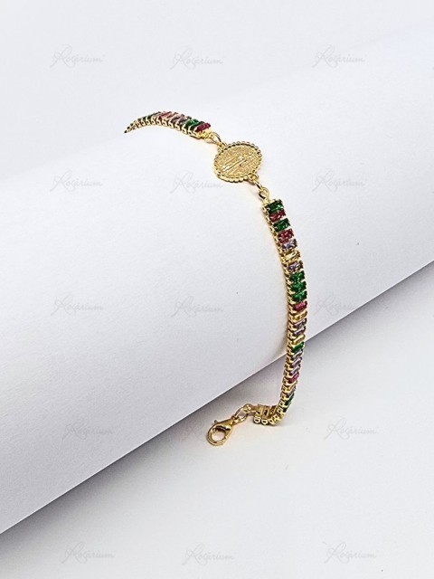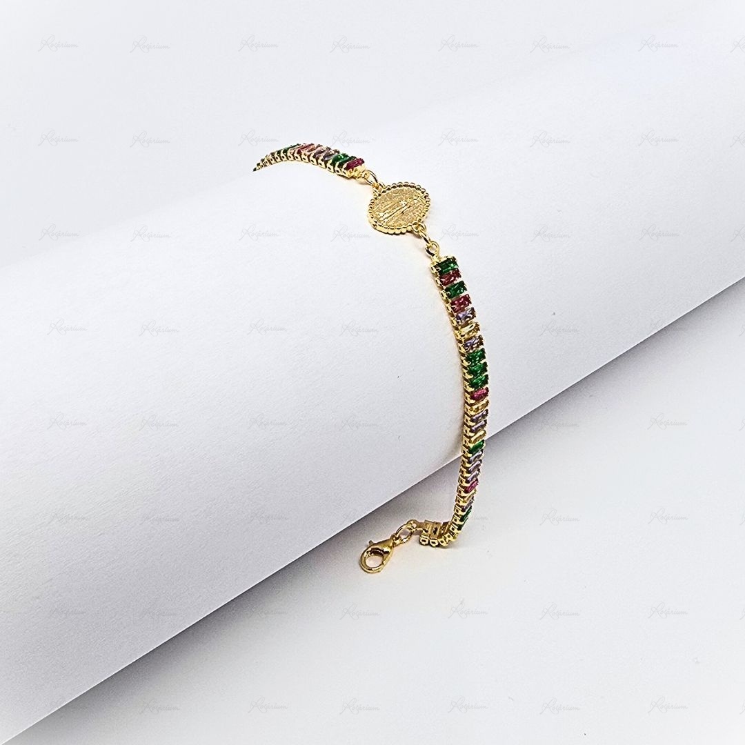 Pulseira Banhada a Ouro 18k c/Zircónias Retangulares Coloridas