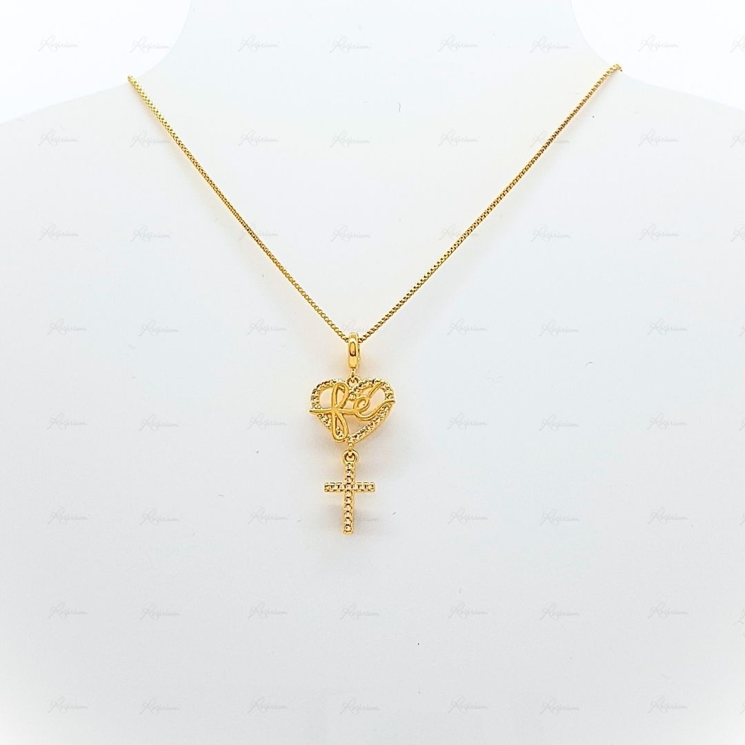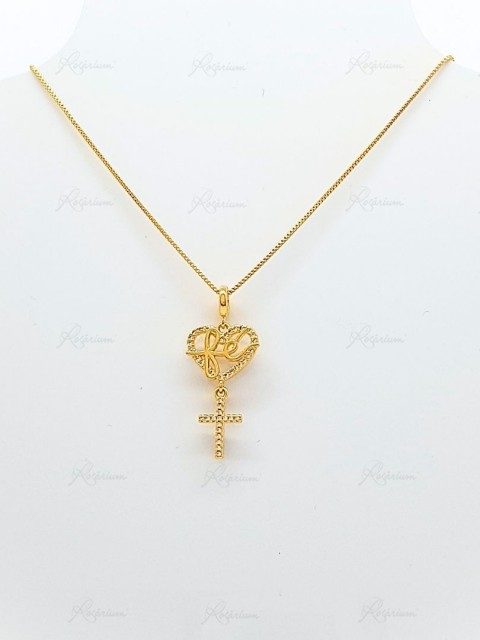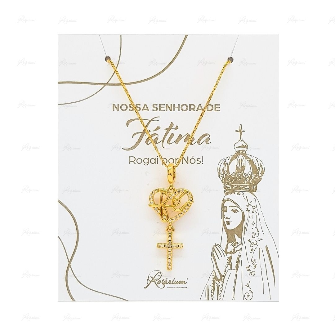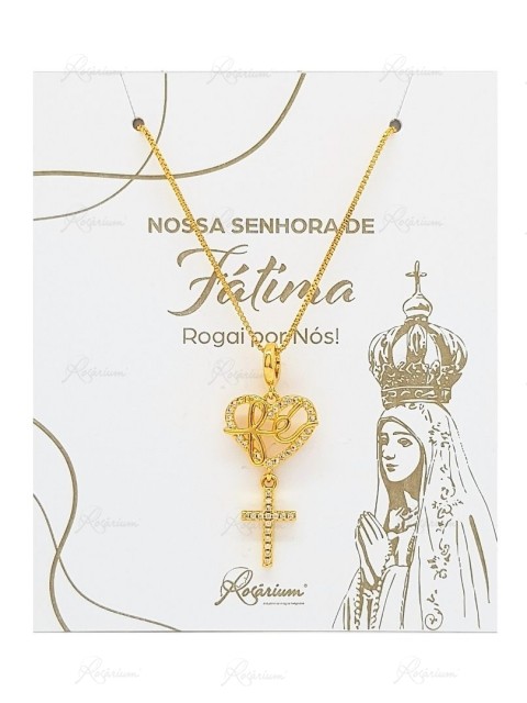 Fio Banhado a Ouro 18K c/Coração e Cruz c/Zircónias - Fé