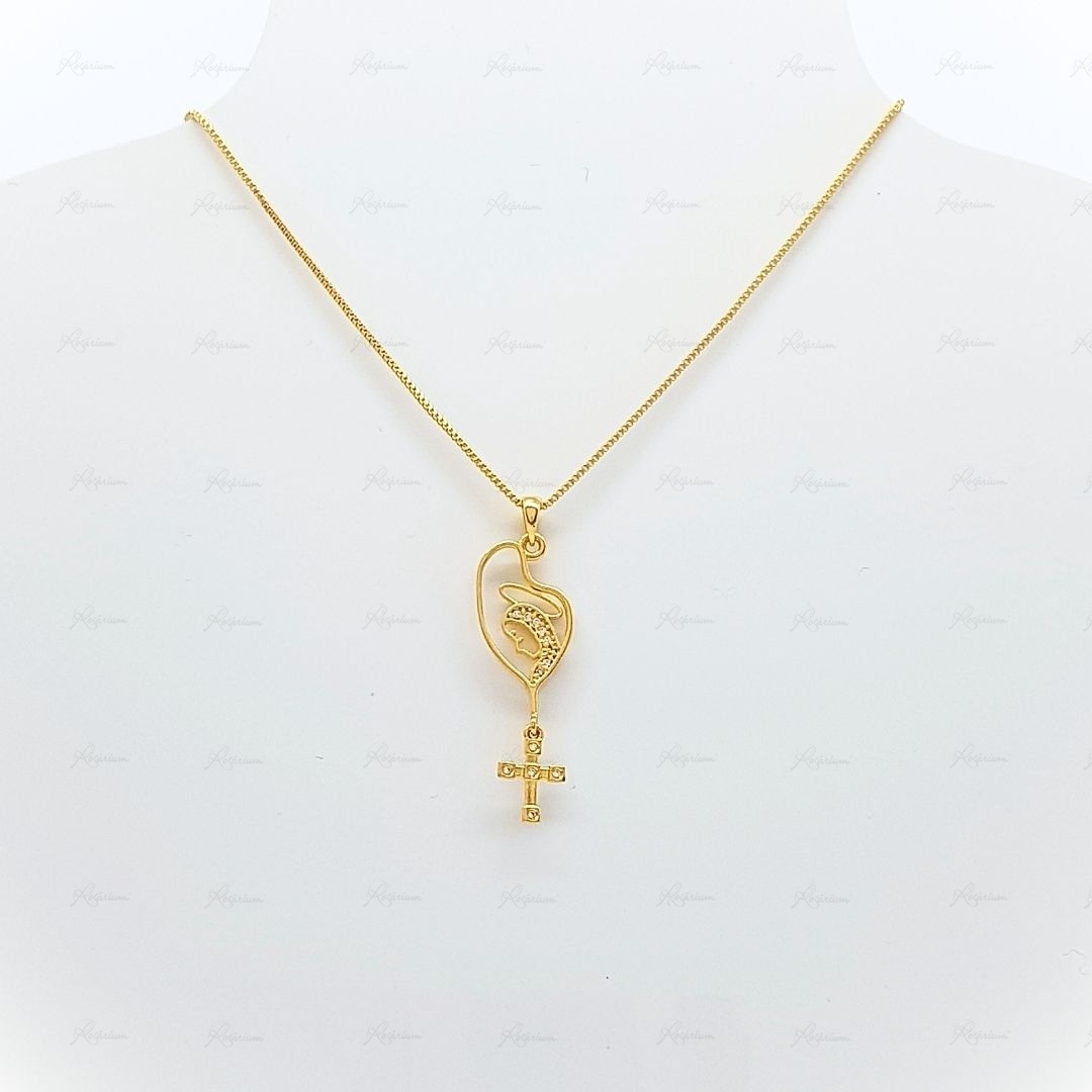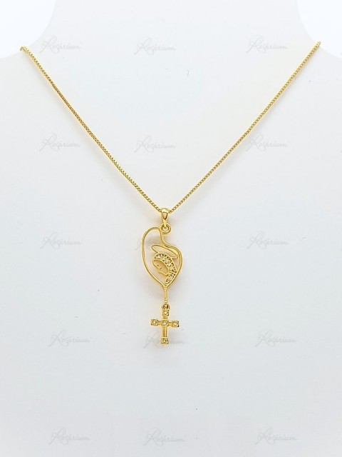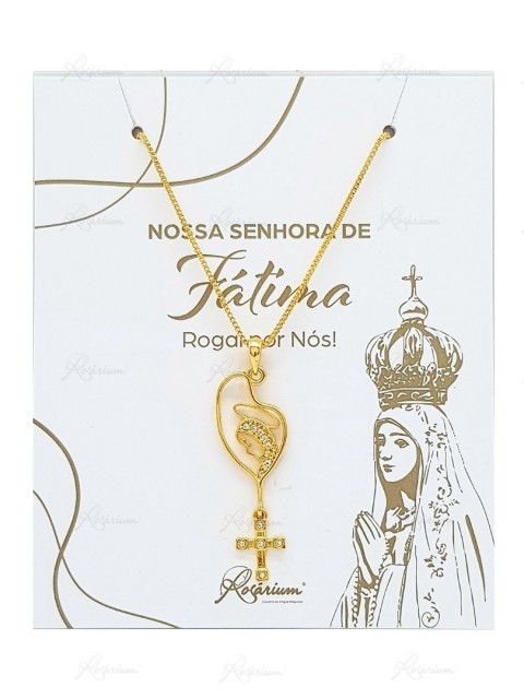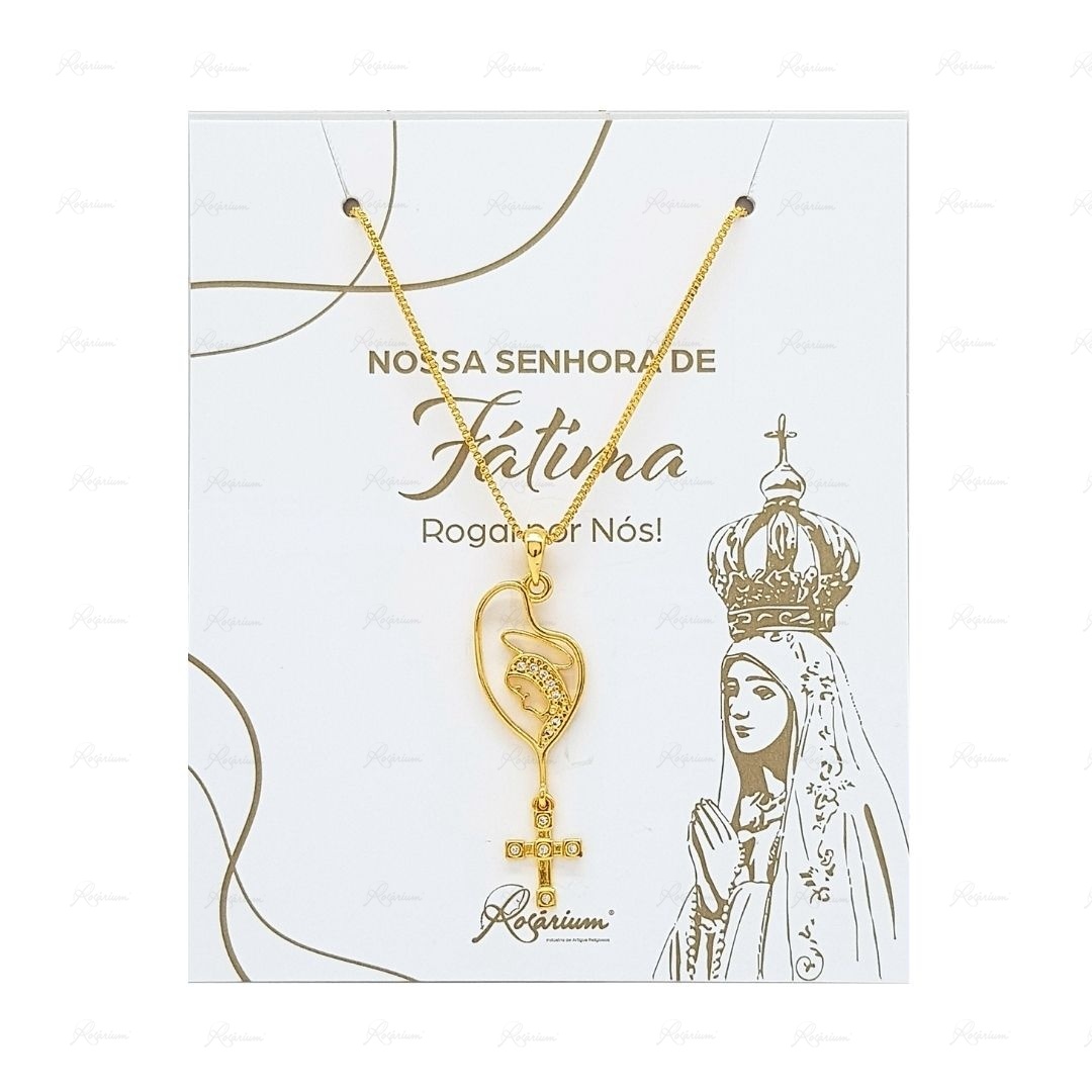Fio Banhado a Ouro 18K c/Nossa Senhora de Fátima e Cruz