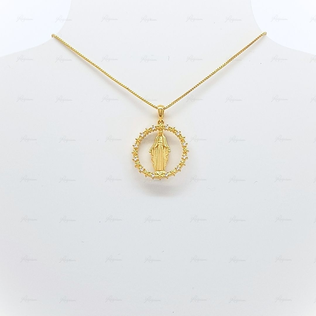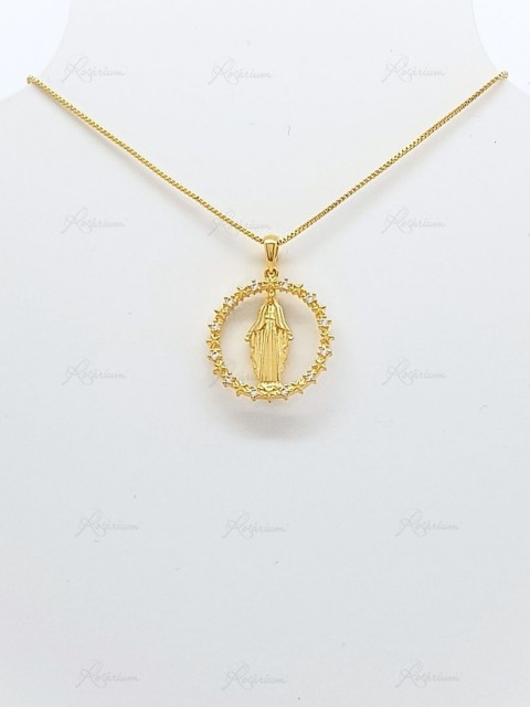 Fio Banhado a Ouro 18K c/Estrelinhas e Zircónias - Nossa Senhora das Graças