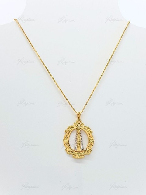 Fio Banhado a Ouro 18K Medalha Harpa - Nossa Senhora de Fátima