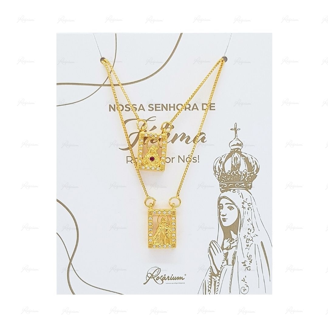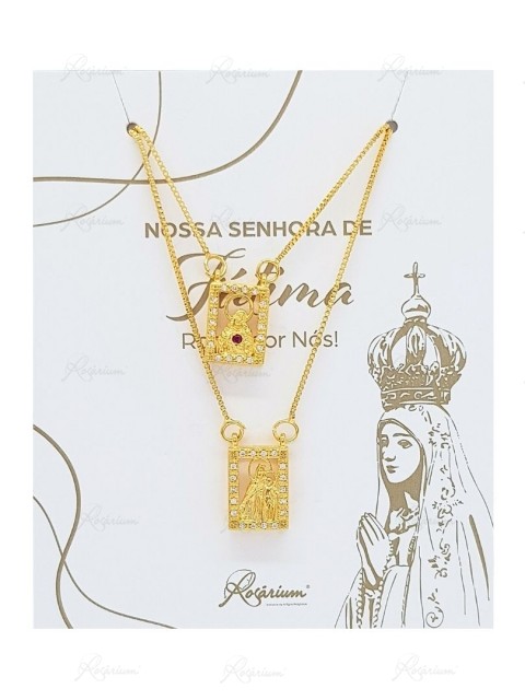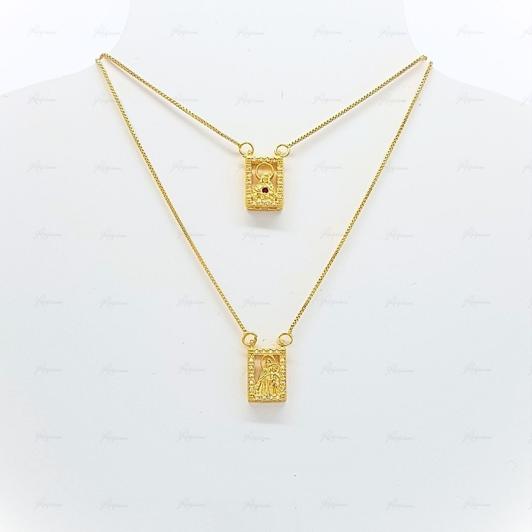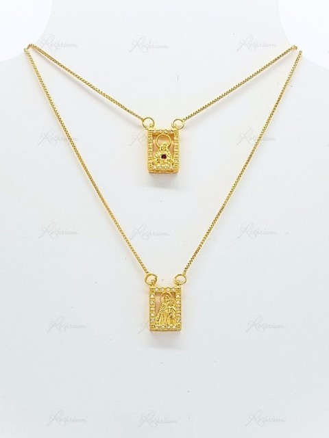 Fio Escapulário Banhado a Ouro 18k - Coração de Jesus e Nossa Senhora do Carmo