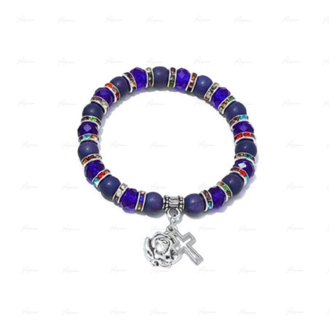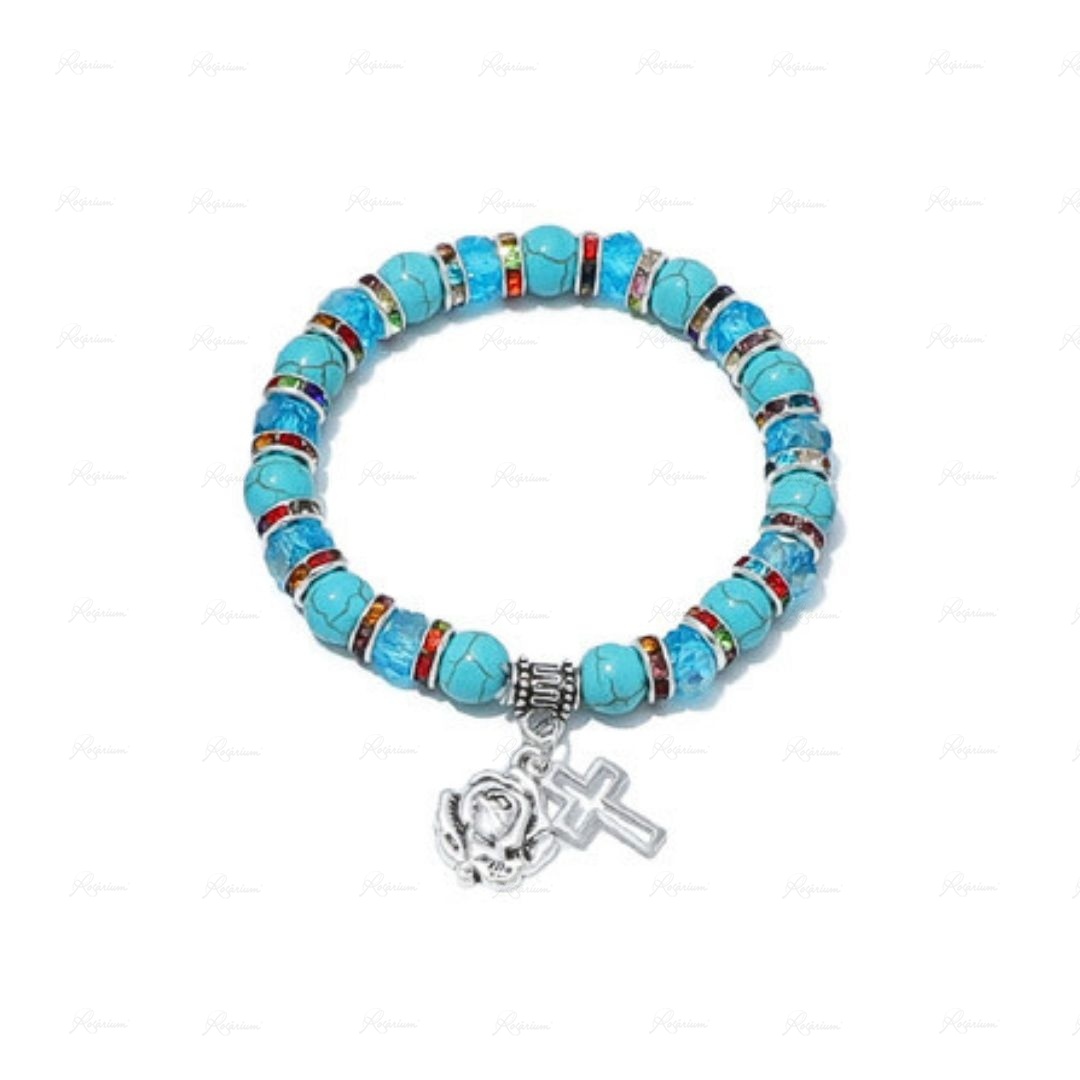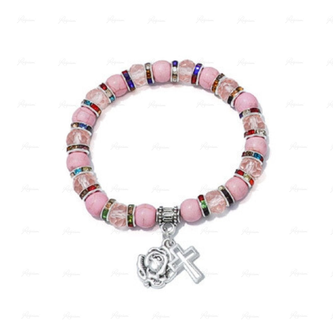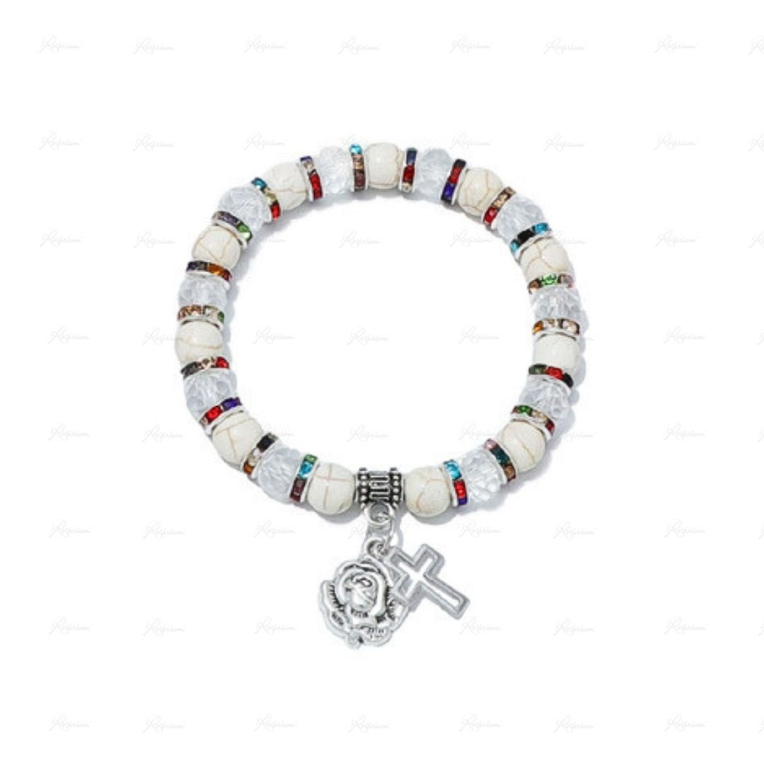 Pulseira de Pedra Raiada e Cristal c/Anéis Strass - Cores Sortidas