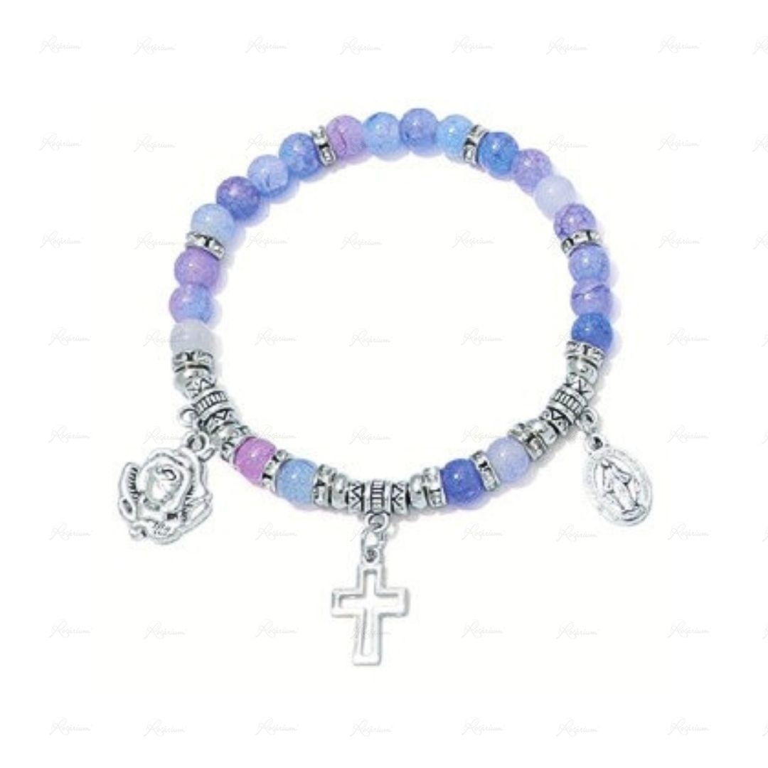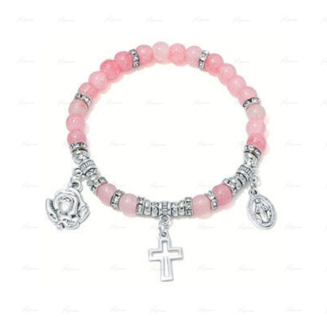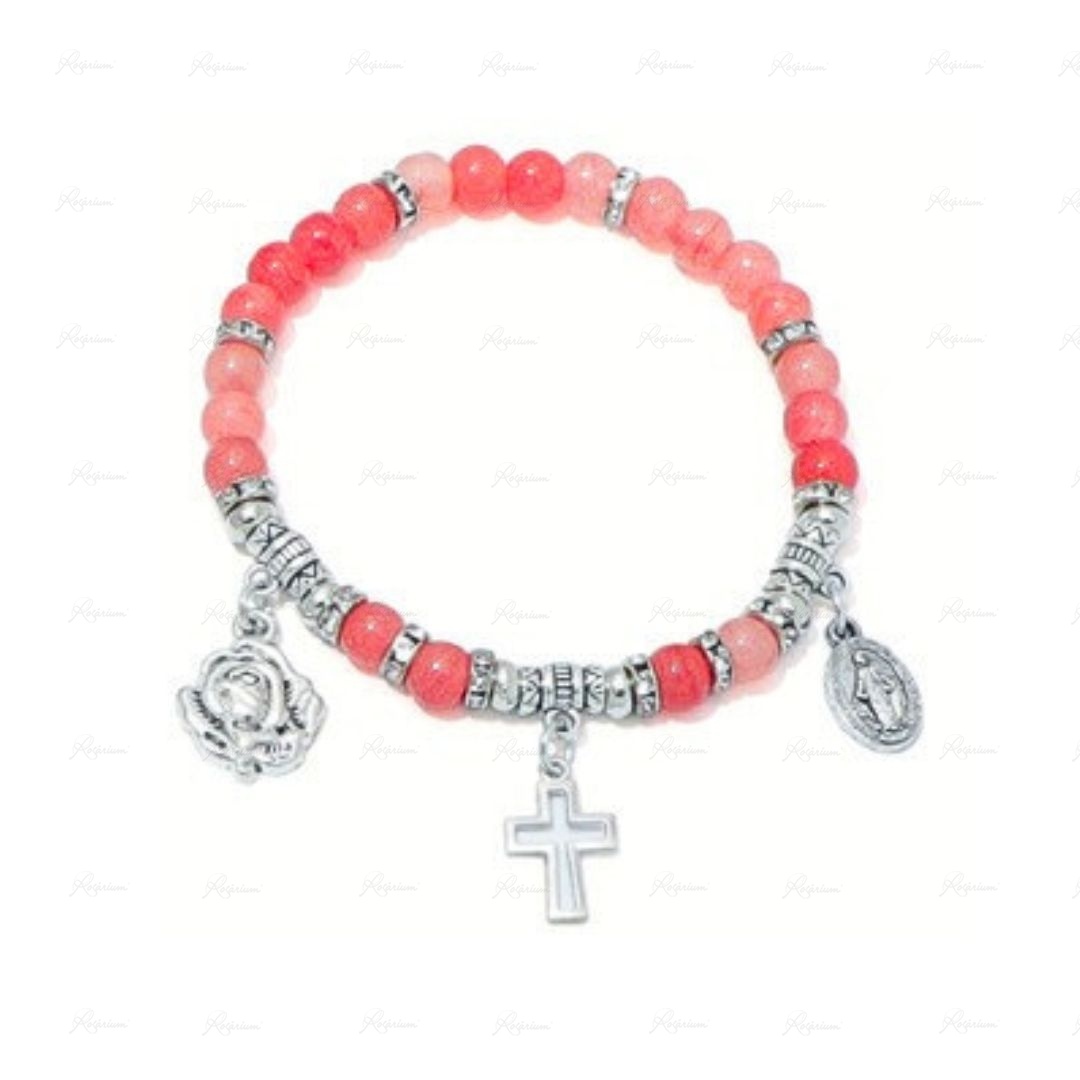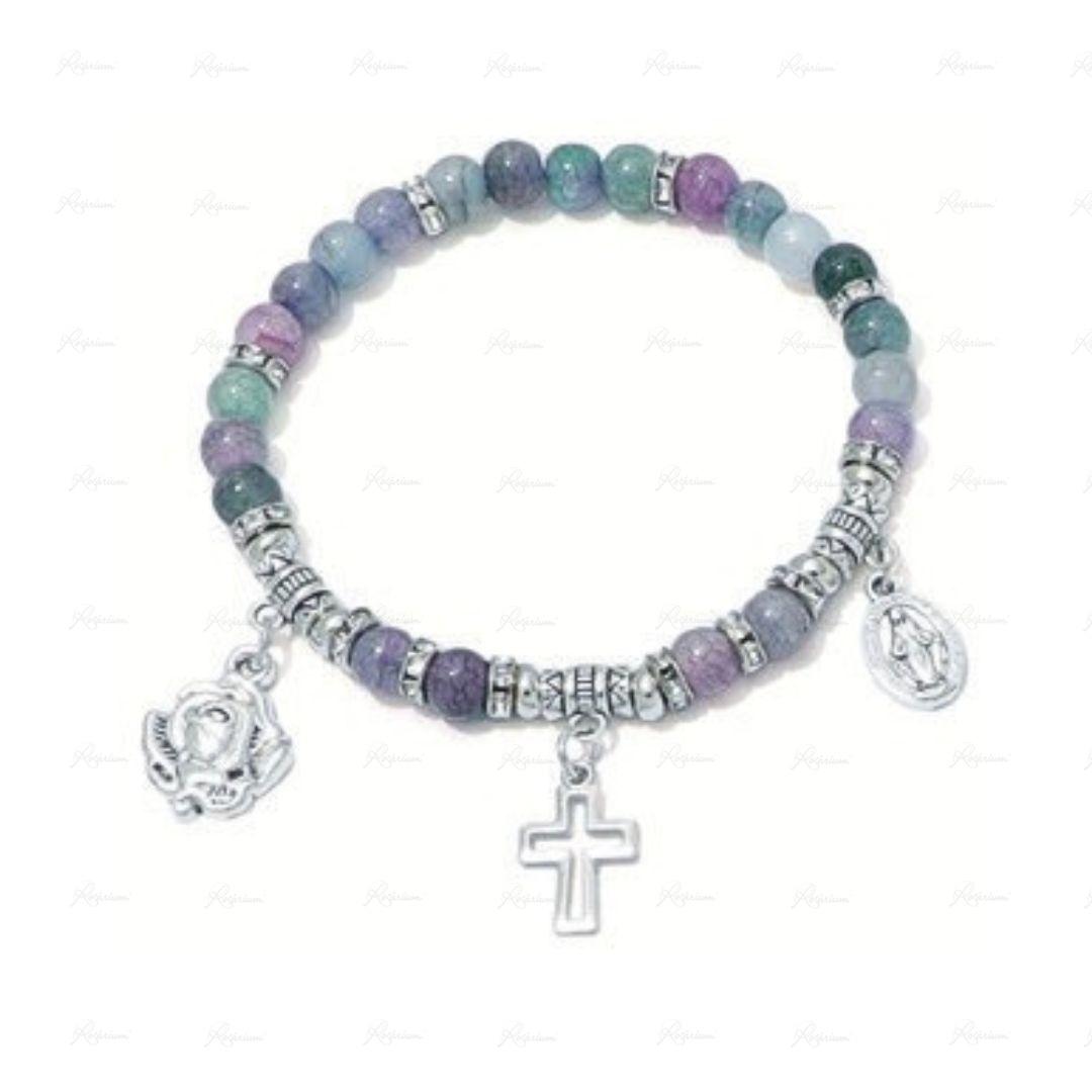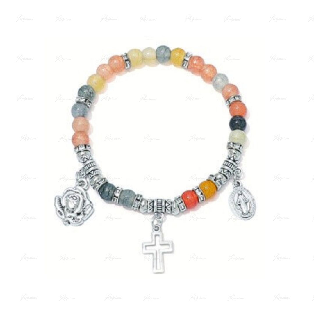 Pulseira de Imitação de Pedra Alabastro 6MM c/Anilhas de Metal - Cores Sortidas