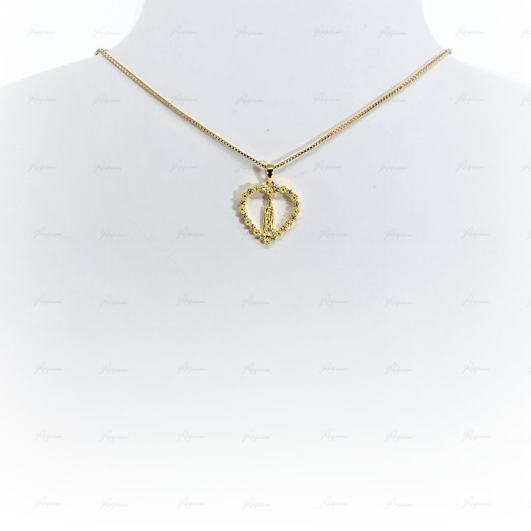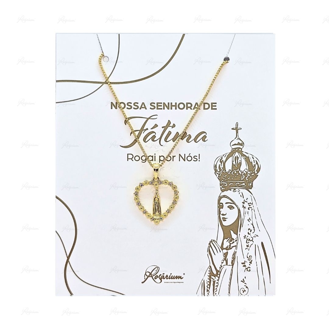 Fio Banhado a Ouro 18K em Coração c/Zircónias - Fátima