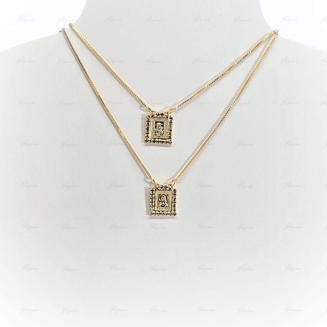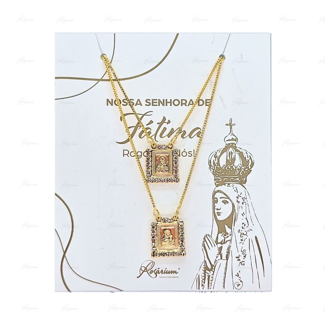 Fio Escapulário Banhado a Ouro 18K Quadrado c/Strass - Nossa Senhora do Carmo