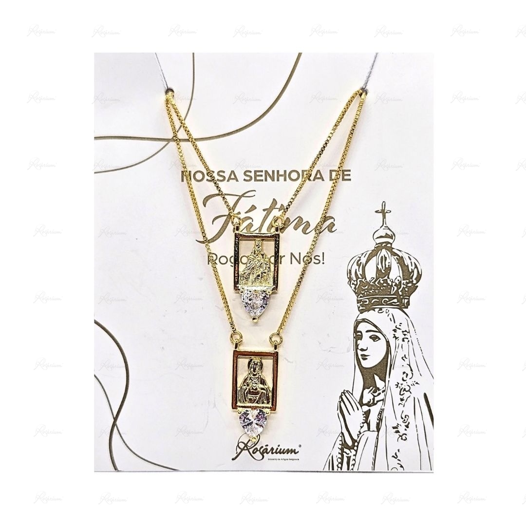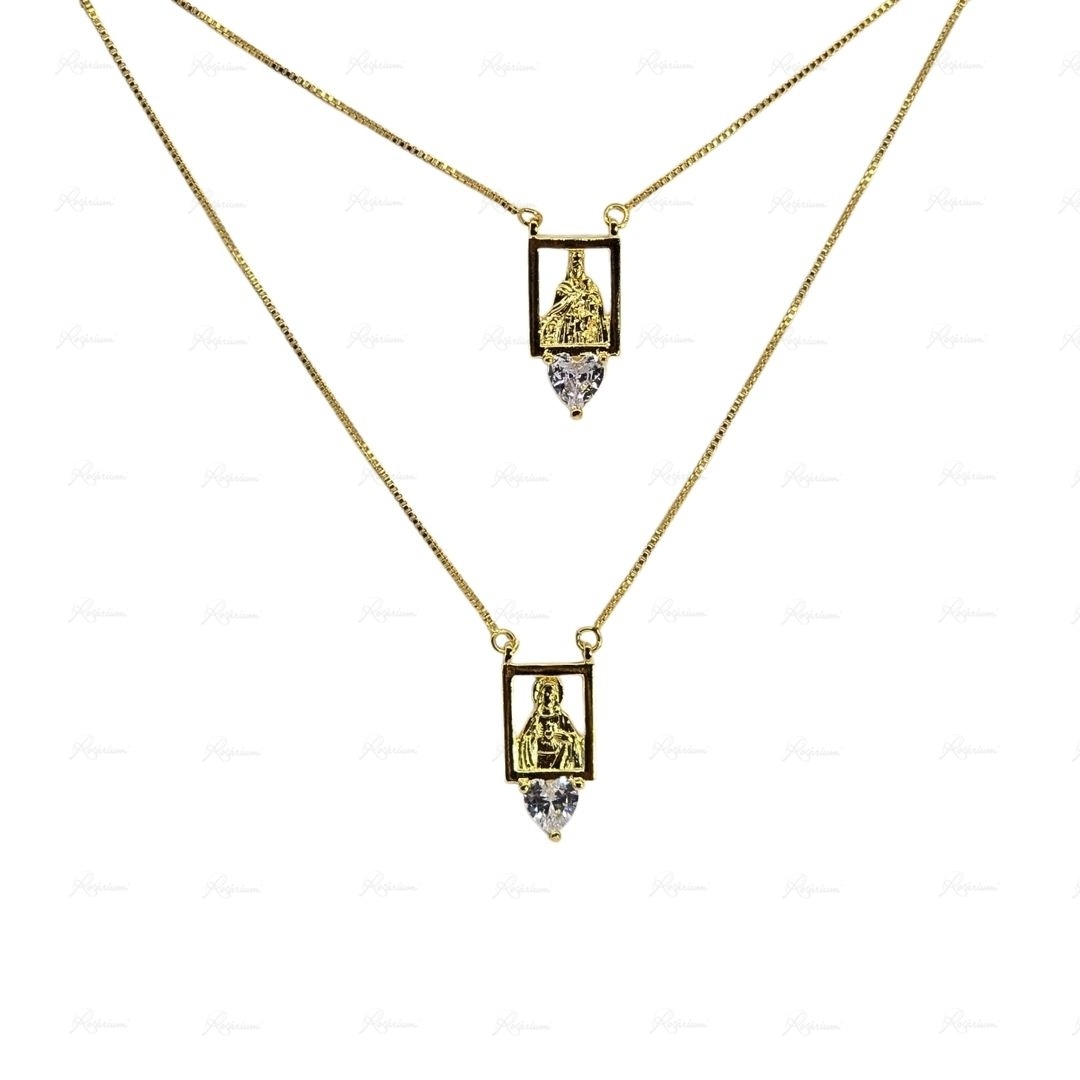 Fio Escapulário Banhado a Ouro 18K Retangular c/Zircónias e Strass