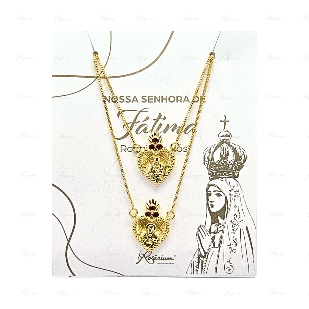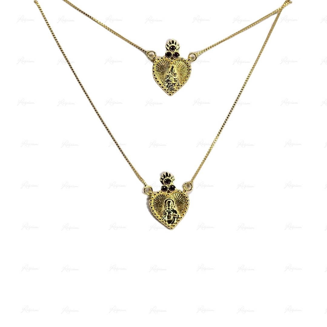 Fio Escapulário Folheado Banhado a Ouro 18K Coração c/Rubi