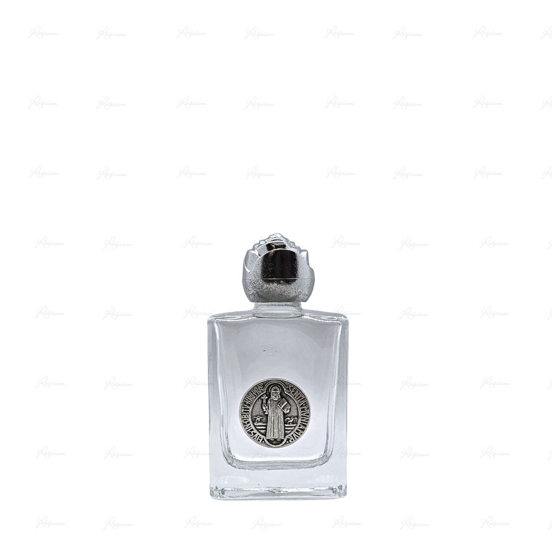 Frasco de Vidro Pequeno Retangular c/Medalha de Metal 7cm- São Bento