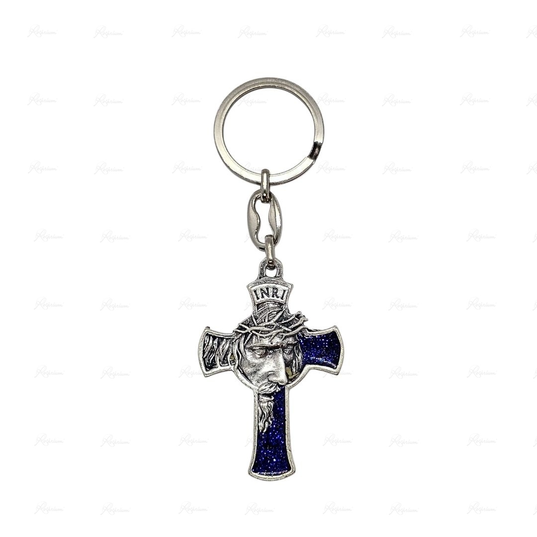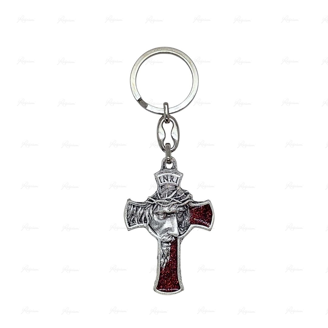 Porta-Chaves de Metal em "Cruz"c/ Rosto de Cristo Esmaltado