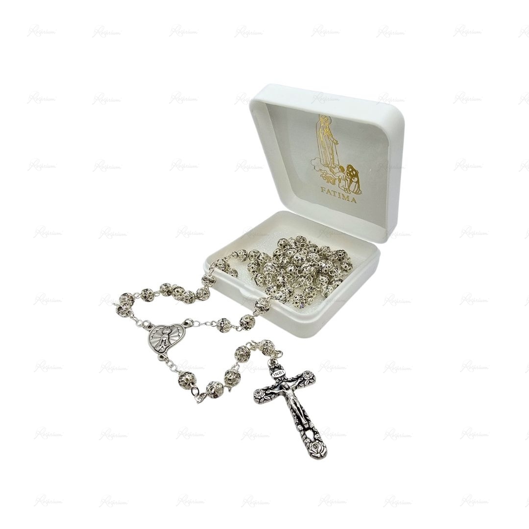 Terço de Metal Filigrana c/frizo e Anel Strass 6MM