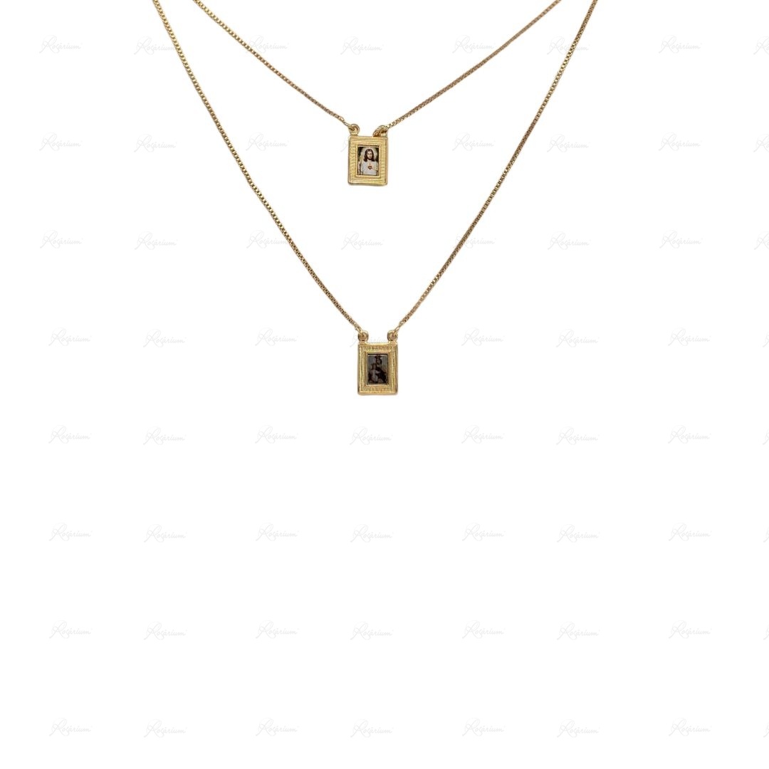 Fio Escapulário Banhado a Ouro 18K Retangular - Nossa Senhora do Carmo