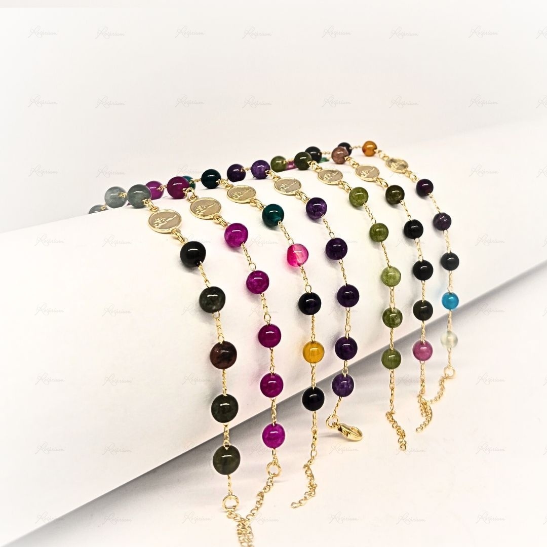 Pulseira Dezena Banhada a Ouro 18K c/Pedra 6mm, Cores Sortidas