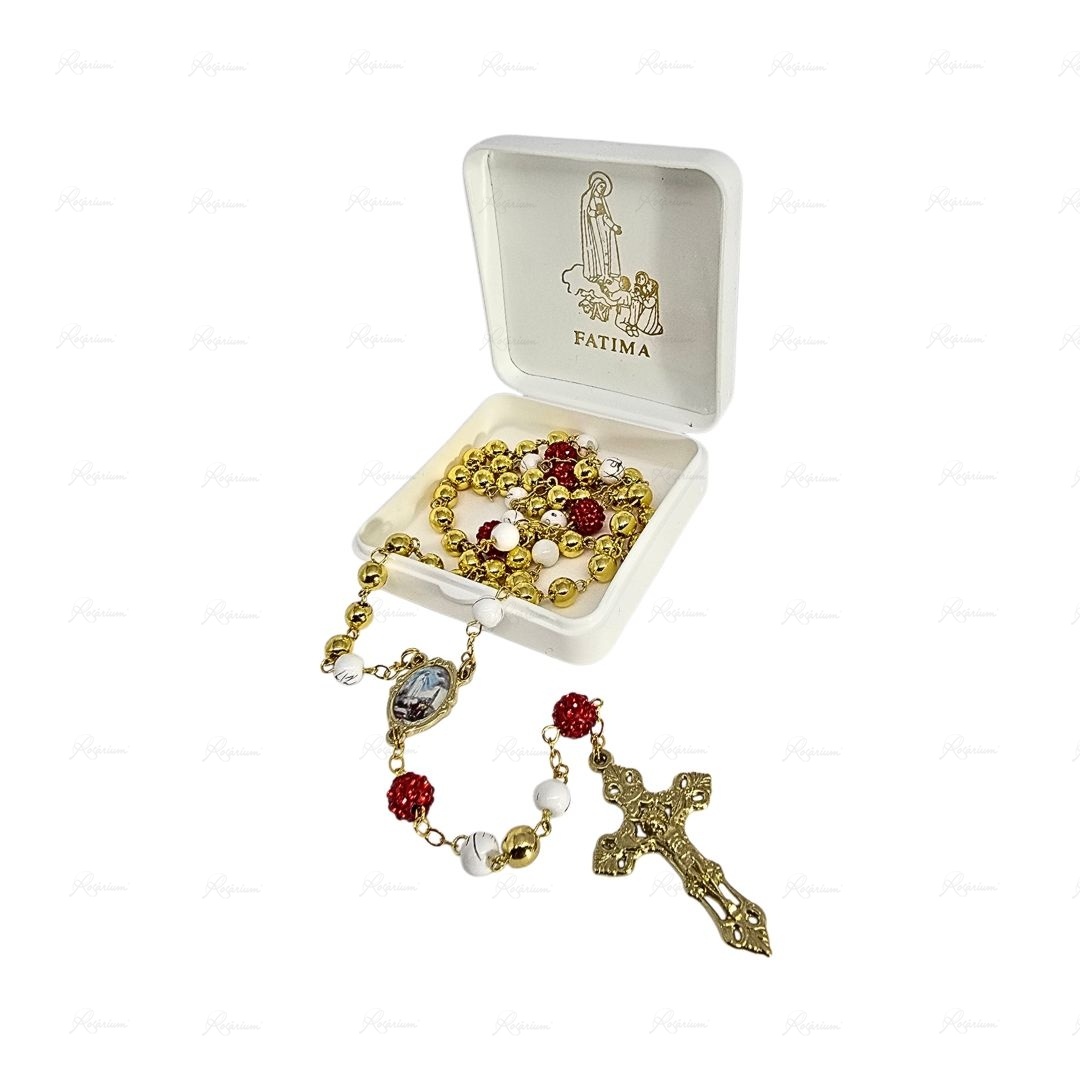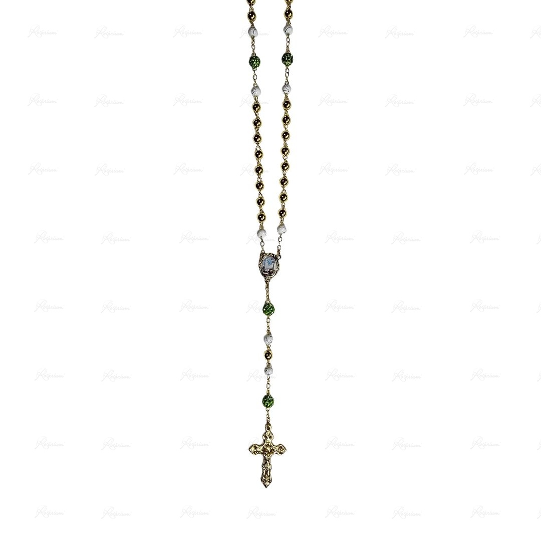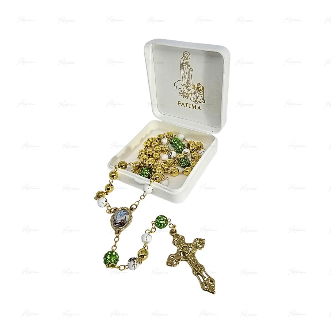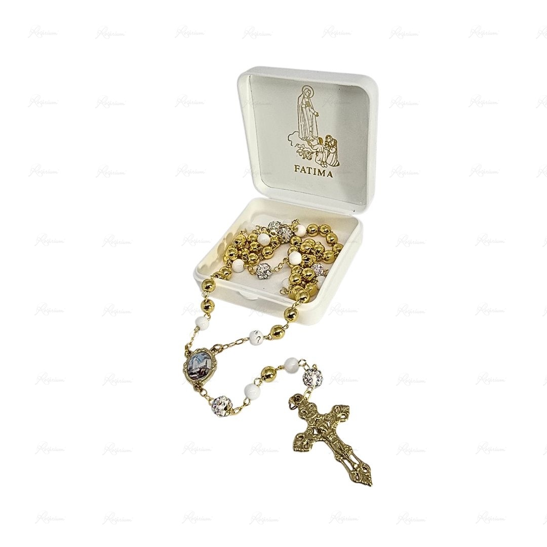 Terço de Pedra Hematite Dourado 6MM c/Strass 8MM c/caixa