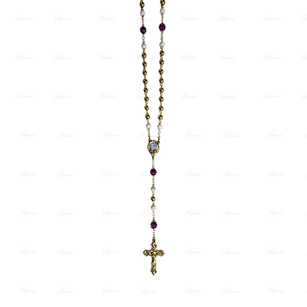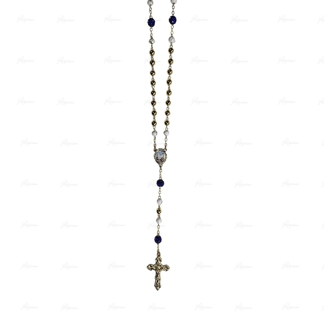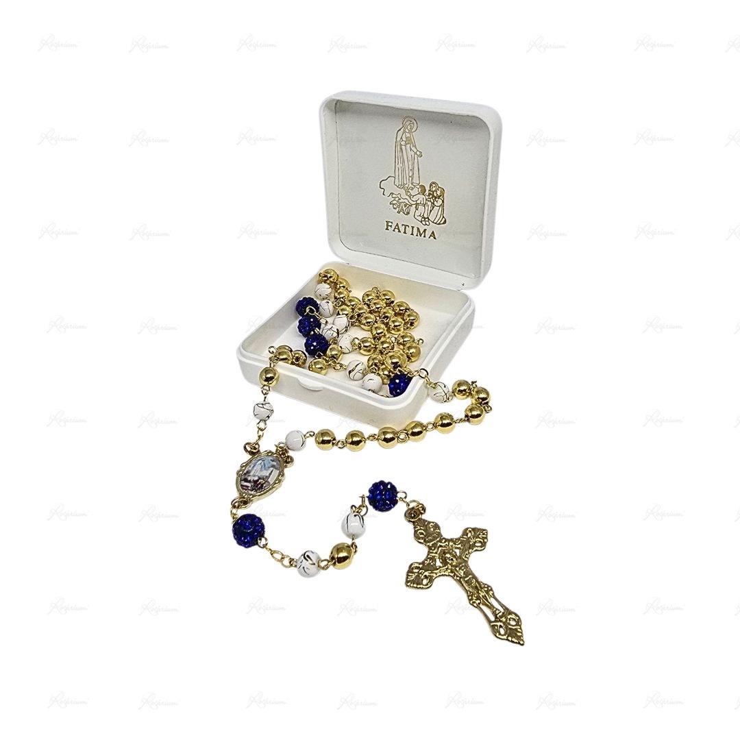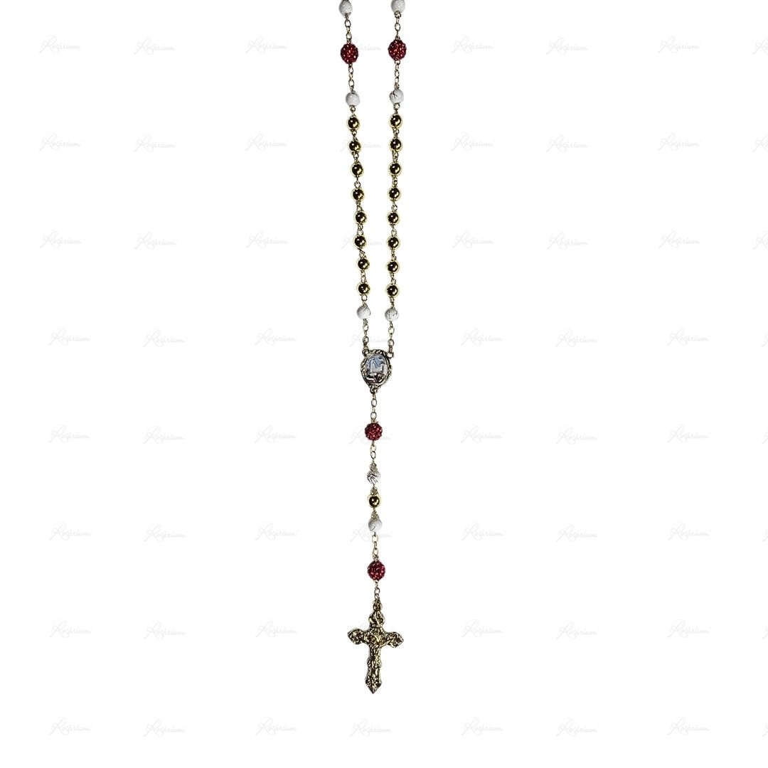Terço de Pedra Hematite Dourado 6MM c/Strass 8MM c/caixa