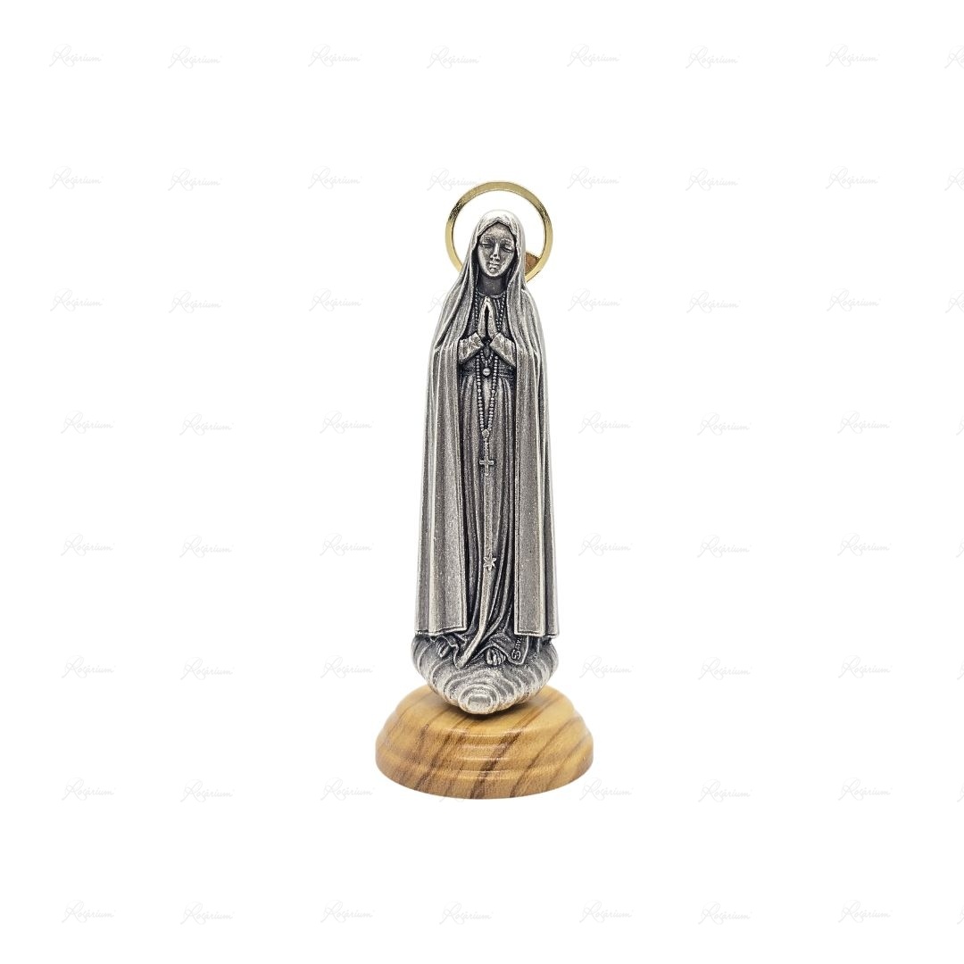 Imagem em Metal com Base em Madeira, 10cm - Nossa Senhora de Fátima
